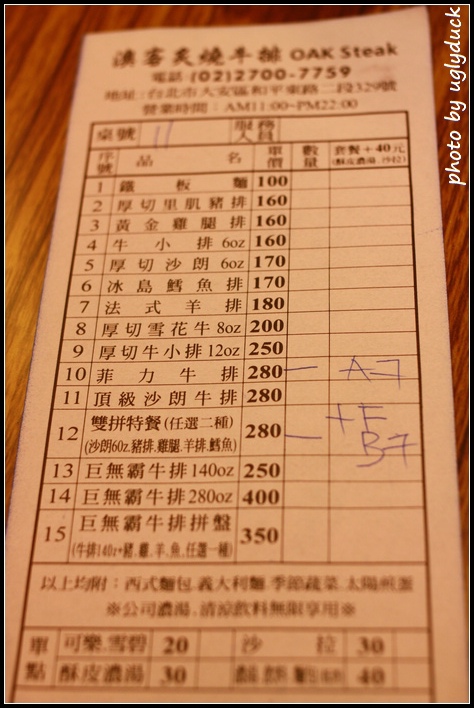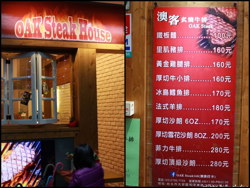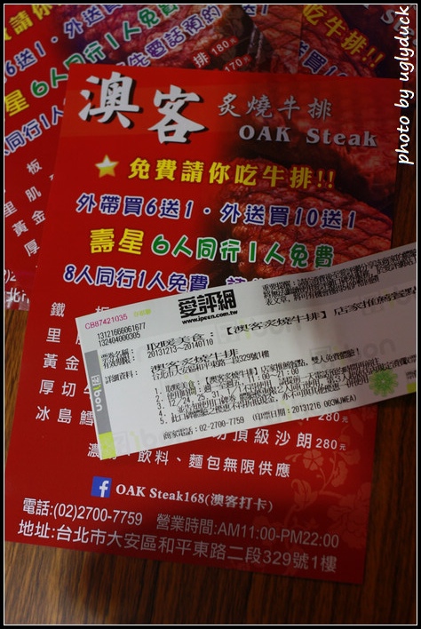 澳客炙燒牛排在和平東路上, (舊稱台北師範院校) 現在是台北大學? 的對面, 旁邊又有成功國宅, 所以客人相當的多, 看上去客層就以學生跟國宅的住戶為主, 所以外地客訂位是有必要的, 而且對於選擇的餐點也要事先訂好否則極有機會選到缺貨的商品呢 !