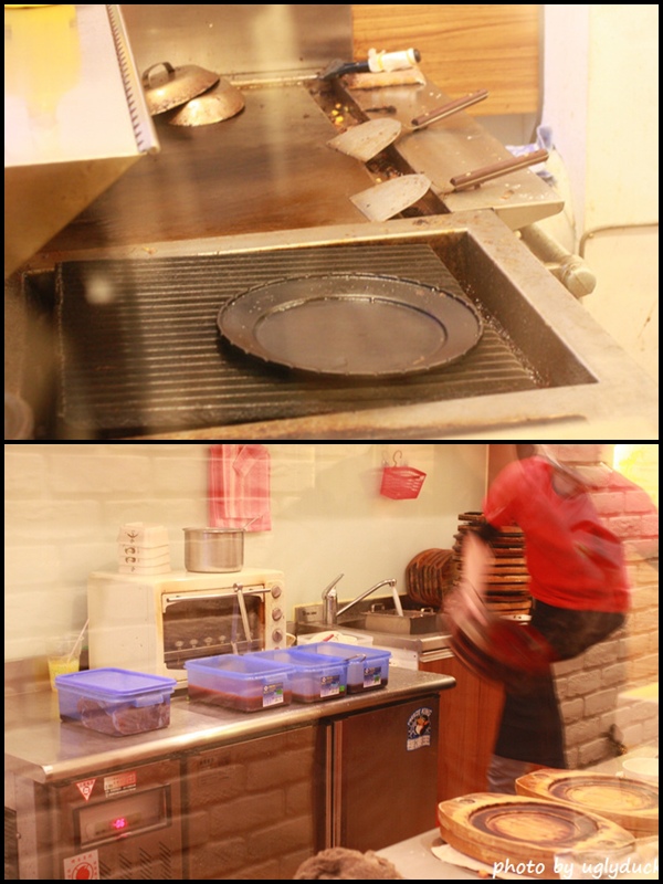 取名 "澳客" 是因為店內用的是澳洲牛的肉品, 而從門口的廚窗中可清楚的看到準備的過程, 當然, 鐵板及肉的油煙也不會到處亂篡, 給人乾淨明亮的感覺