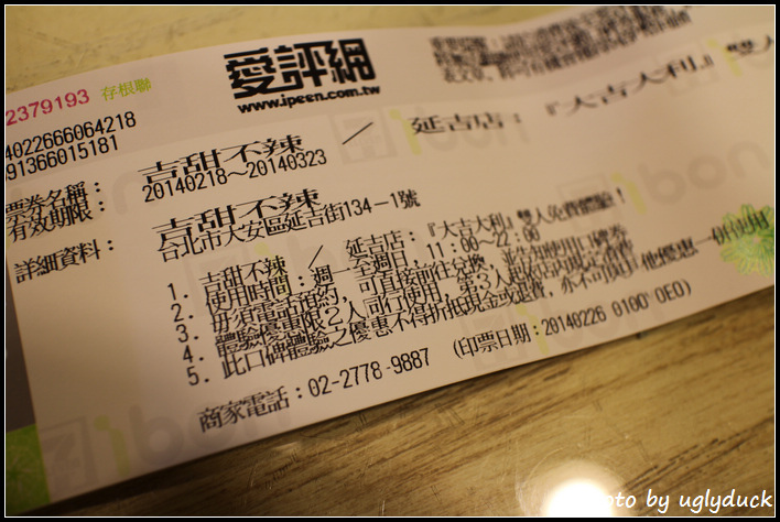 當我還以為延吉街只有那一家賽門甜不辣的時候, 出現了這張吉甜不辣的口碑券, 而且竟然還有剩下名額, 這對於愛評網台北市口碑券都秒殺的情況來說實在有些不可思議, 當下還想有沒有陷阱呢, 不過還是要換啊~