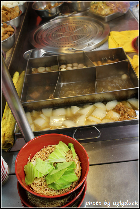 吉甜不辣的大骨柴魚蘿蔔湯是一整天都在熬煮的, 所以湯的鮮甜味都在其中, 而幾碗雞絲麵也以備好料在旁等待, 基本上甜不辣的備料多是已經煮熟過的食材, 再經過高湯的熬煮把湯頭的味倒煮進食材中獲得美味哩; 吉甜不辣的頭一字就是取它所在的延吉街而命名, 在這邊已經開了三年了, 根本就在東區商圈中的吉甜不辣地點算很不錯, 即便我們晚上 21:00 到這邊, 也陸續都有人進來點用, 有麵又有甜不辣不管是做為正餐或點心都相當合適