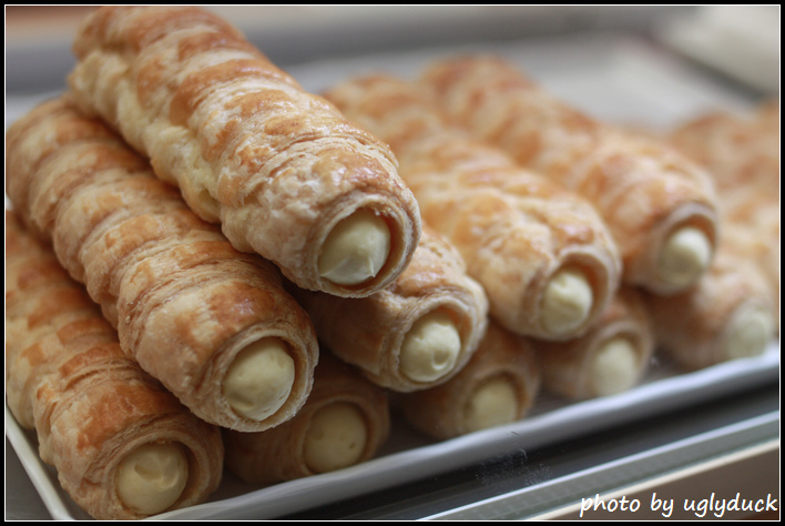這一根要 150 円, 外皮是像千層酥派一樣的, 有著蓬鬆酥脆的口感, 而其內餡則是鮮奶油, 因為有冰鎮過整個紮實的像是咬起司, 但是入口後很快的就化了開來, 那濃純香的口感真的很好吃, 而且因為這些都是當天現作的, 所以新鮮度更是不容質疑