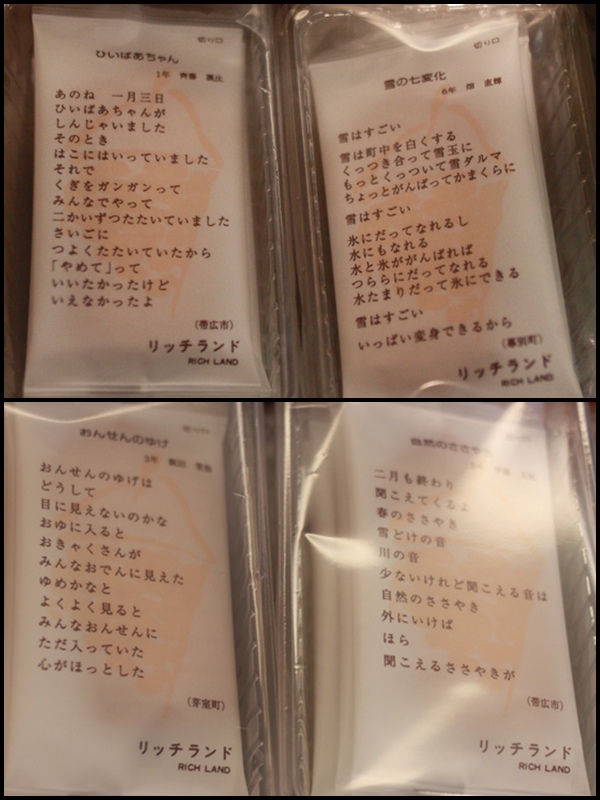 這個餅乾很有趣, 是以北海道的小朋友們寫的句子做成外包裝盒, 可惜看不懂在寫啥呢~
