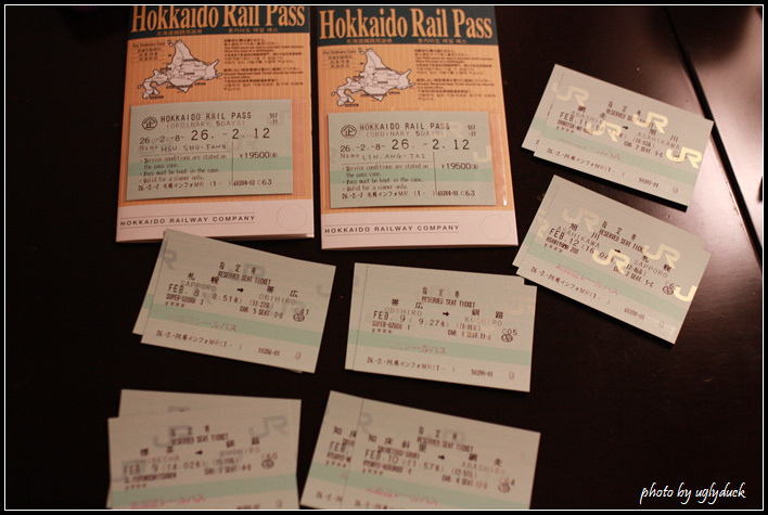 那麼, 北海道應該玩幾天呢 (以道東道北為例)? 原本是想大老遠來到這邊, 假都請了, 不如來個 9 天 8 夜之旅吧, 但終究是被機票綁住了, 就在 2014 過年的這一個月之中, 來回機票最划算的時間大約落在 5~7 天, 再看看 JR 票券的種類, 多日票分為 3. 5. 7 以及任選 4 天(價格同 5 天), 扣掉到北海道都已是下午時間, 折騰一下基本上出門去玩已經是傍晚, 回程的最後一天通常也不會有太長時間的趕車路程, 所以應該是任選 4 天或 5 日券, 那既然價格相同, 當然是 5 日券嘍, 而且路線的規劃本就是連續的搭車有 5 天, 依這個方式來說最為便捷 (在此我不說超值是因為最後真正算起來, 省下的車費不到 3,000 円, 不過那是我個人規劃的關係, 但確省下不少買車票及擔心沒車坐的時間), 所以最後的決定就是 7 天 6 夜的玩法
