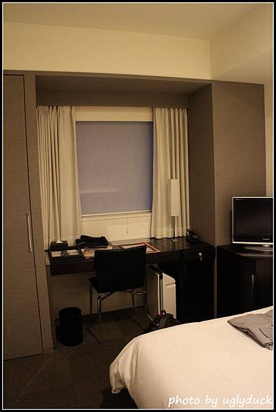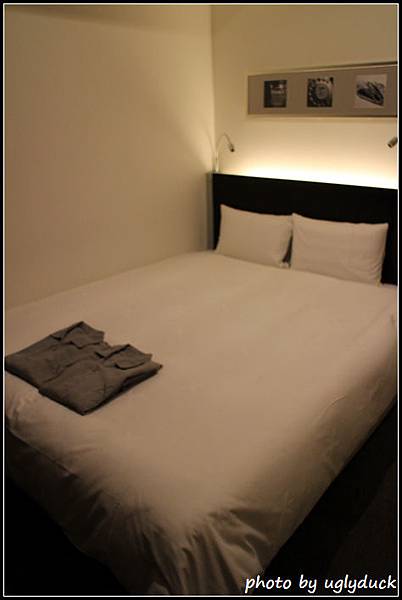 一如日本地小人稠的形象, 飯店房間都知道會是小小的, 這是 semi-double 的房間, 已經比起東京要大多了, 雙人床中間擠個小人還綽綽有餘, 床也算柔軟, 亦附上浴袍