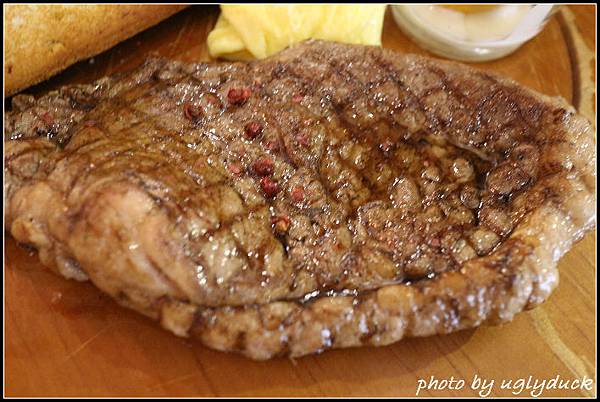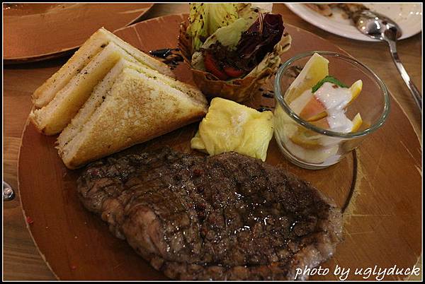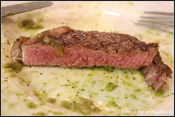 回到牛排的部份, 處理的並不馬虎, 兩面煎熟的牛排鎖住了裡頭的肉汁, 狀態大約是 6 分熟, 切的時候不會見到血水可還是感到肉的軟嫩, 雖如此但要切開肉倒也不是那麼困難, 不需要有其他的調味, 光是肉的味道就可在嘴中體驗許久, 算是有驚豔到呢