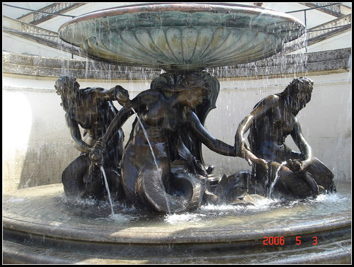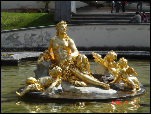 石階中間也有小的噴泉, 銅像的作工細緻還有配合造型的噴水池