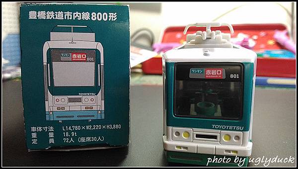 這台豐橋鐵道車是屬於路面電車的輕軌系統, 可以看到低底盤的設計連原來 Q 車的車輪都見不到了