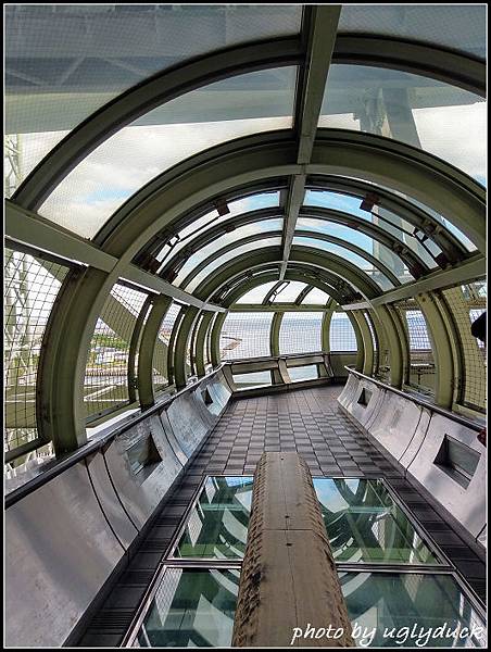 從這邊可以看到維修步道, 鐵路, 以及底下的海峽, 相當的安全又是室內的設定, 讓人整個過程都相當的安心, 當然這邊最刺激的就是大橋見學的活動, 那是可以走到戶外直上維修步道的, 甚至還有登上橋頂的散步, 只是這必須事先線上預約, 我們就沒辦法了