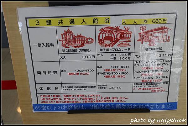 橋的科學館參觀需要買票, 這邊有三個館的共同參觀券, 可視自己時間的安排來決定, 我們今天的時間只夠我們去舞子海上步道, 所以就沒買這種票了