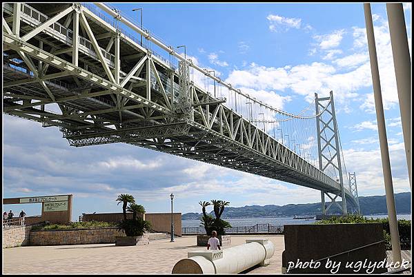 旁邊就是夢幻鏡頭啦, 也可以看到明石大橋的全貌, 在這個海邊的公園, 除了沒地方躲太陽的困擾外是非常的舒服的, 到了黃昏時分, 這邊更是充滿了散步的家庭, 小朋友的嬉笑聲不斷, 完全感受到愜意的生活