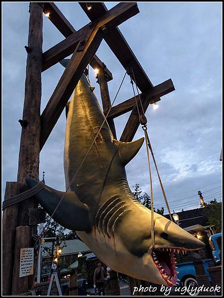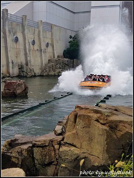 環球影城之所以叫環球影城, 裏頭很多的設施是依據環球知名的電影而設置, 向水上世界就有這個大白鯊這部電影改編的故事, 雖然聽不懂日文的劇情, 但體驗實際上的船上旅程也是很過癮的