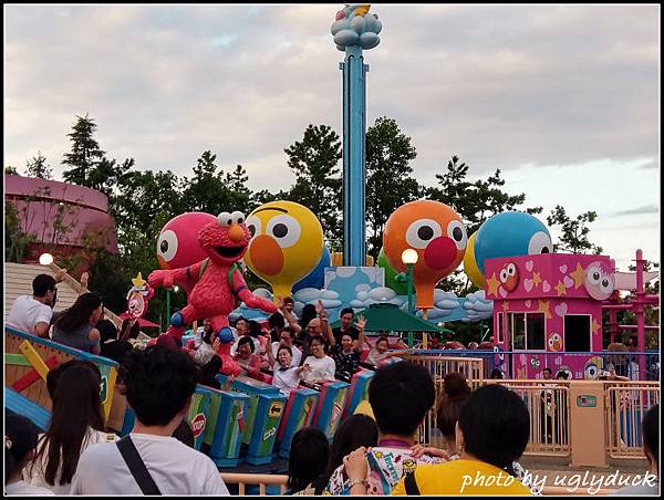 傍晚的時候大家開始去排鬼屋, 小朋友區的排隊就少非常多, 短時間內就可以玩到更多樣遊樂設施