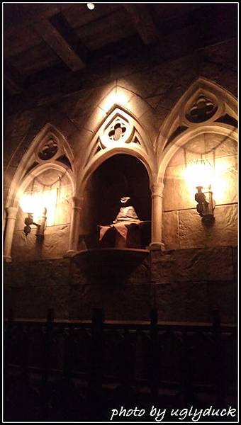 進到遊樂設施的室內, 會講話的分類帽正等著分發妳的學院, 可惜實在太暗了