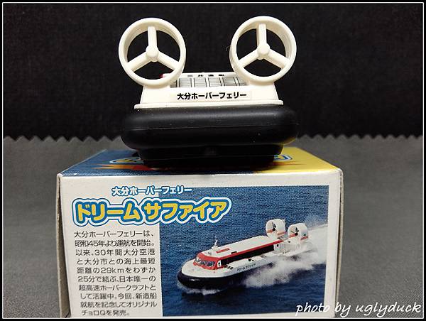 盒背上有此船的說明與照片, 做為 Q 車一族, 既是少數的船造型又是唯一的氣墊船, 收藏價值極高