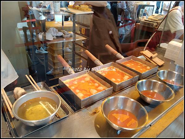 就這樣熱騰騰一串鹹甜的玉子燒就來了, 整個香氣就是很棒, 厚實又 Q 彈的口感吃來相當舒服而且比冷得好吃很多