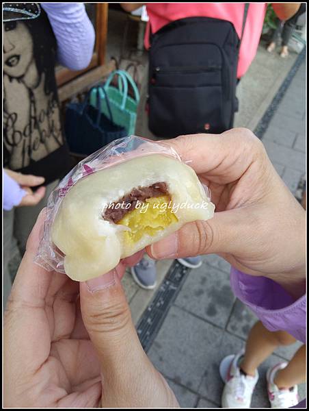 裏頭包了一層紅豆泥, 底下則是更多的當地地瓜泥特產, Q 軟的外皮配上香甜的內餡其實是很好佐茶的點心, 只是我們在路邊吃有點煞了風景~ 不過無損它的美味
