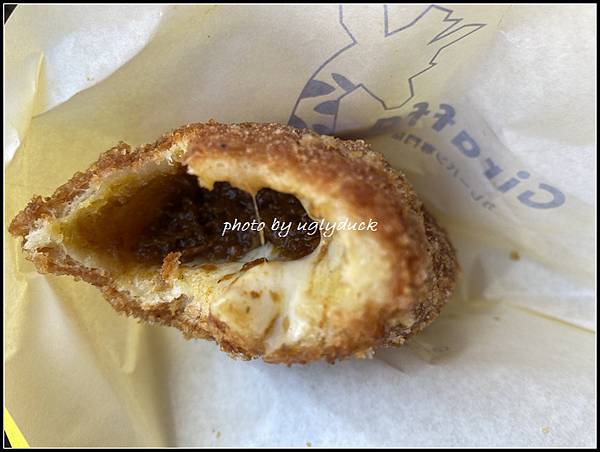 一咬開來香濃的咖哩就撲鼻而來, 酥脆的外皮而內層的麵包體還是蓬鬆的, 還有起司相當的燙口, 想要拉絲一下要注意別影響他人, 有個有趣的現象是現場有鴿子, 會在那邊等遊客丟一些小的麵包屑餵, 或是等待掉下來的部分, 不過這樣餵食其實不太好就是了