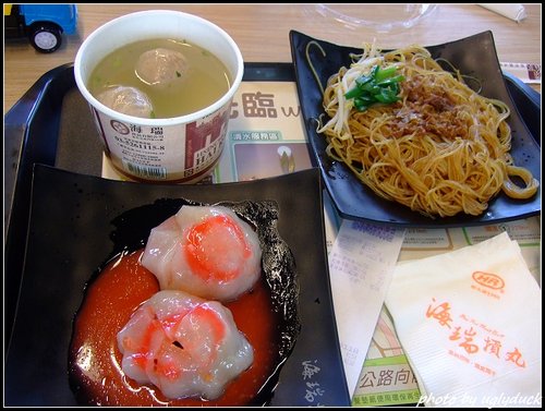 今天點了炒米粉. 摃丸湯, 還有紅糟肉圓, 跟一號餐很像, 就差把香酥燕捲換成紅糟肉圓