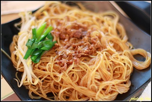 海瑞的炒米粉應該是很道地的新竹米粉吧, 比我個人認知的米粉 (就是綠色包裝的龍口米粉) 要長很多, 要形容的話說是美眉飄逸不捲曲的長髮也不為過, 而且也比較粗有些份量, 所以吃起來的時候嘴巴不會像一般炒米粉咬起來有些空氣感, 是可以飽食的那種
