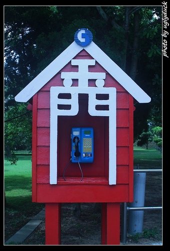 金門這個位居中間的攻防要塞, 傳著許多可歌可泣的故事, 以前除本地居民外, 大概也只有阿兵哥可以踏上的土地, 在現在這個拼經濟的時代, 當然也就開放觀光了, 而戰地風情也多了一股不同於一般觀光的感覺, 這個電話亭頗有設計, 外邊兒白漆的部份一看就是 "金門" 二字