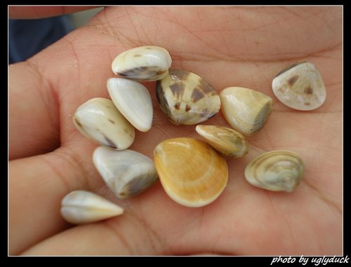 在海邊揀拾這些小小蛤蜊還滿有趣的, 雖然個頭小小但可是很有活力的唷, 也見證了金門海灘的乾淨啊
