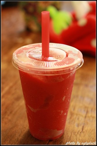原來一杯 100 元的草莓冰沙, 現在特價只要 50 元, 當然來上一杯嘍, 不同於草莓雪花冰, 冰沙的味道更是濃郁, 也因為沒有煉乳的關係, 更可喝出草莓酸酸甜甜的滋味