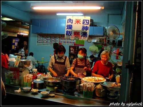 這一間米糕. 四神湯由於與隔壁攤的黃記鱔魚意麵共用攤位, 沒有自己的招牌, 因在水仙宮附近姑且稱之, 實際的位置就在國華街三段與民權路口, 下午四點才有營業一路到凌晨一點, 想吃宵夜的人不怕沒地方