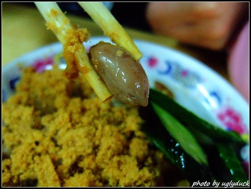 花生大概也是台南才有的吧~ 哈~, 光是這一碗米糕就比起滷肉飯豐富, 而因為飯料分離, 也就不會像油飯一樣吃多會膩的感覺, 晚餐後到睡覺前還有不短的時間, 光是吃上這一小碗就覺得大大的滿足啊~
