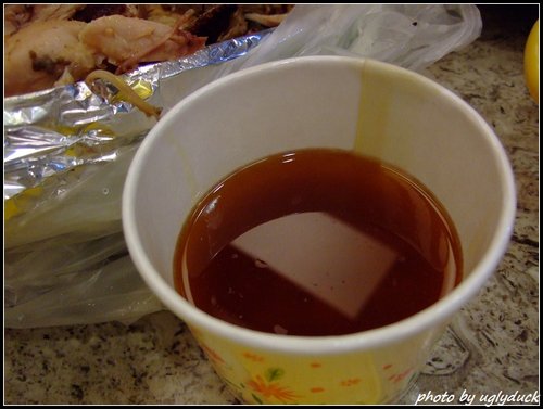 好勿容易拆開了, 原來這 "義式田園紅椒雞" 是因為雞肚子裡放的不是一般的中藥材, 而是由紅蘿蔔. 西洋芹. 大蒜. 茄苳葉及香料組成, 不過也沒看到 "紅椒" 就是了~ 配料相當的鹹就不建議食用了, 倒是大蒜還不錯吃 (因為大蒜不會吸收鹹味);