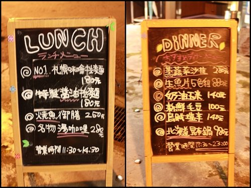 第一次經過時是中午, 以為沒有營業, 看到看板後, 原來都有呢~ 而且中午的拉麵也不算太貴喔
