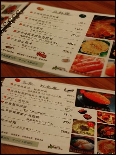 本來有考慮要點 "富良野" 的會席料理, 結果上頭寫著要提早預訂, 有點可惜, 否則幾個特色菜都吃得到呢!!! 一共有三種選擇 富良野: NT$800. 知床: NT$1,200. 函館: NT$1,500