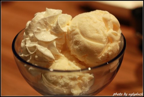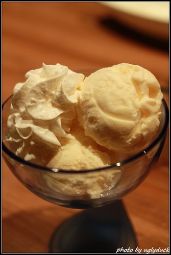 兩球香草冰淇淋也是產地直送? 應該只是原料吧, 但說實在的好吃, 不同於一般冰淇淋而更為濃郁的味道以及那種黏稠感很棒, 好像裡頭放了麥芽糖般的甜可又不會覺得膩. 奶味也十足, 搭配旁邊的奶油吃更是可口