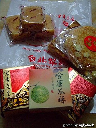 店面並不會很大間, 約莫和一般小麵包店一樣, 可裡面服務人員很多, 隨手一算竟至少六個, 店內相當整潔, 整個也是以橘色調為主, 舉凡月餅, 太陽餅, 老婆餅, 鳳梨酥, 綠豆碰等等都可以散裝或盒裝方式購買; 價格比其他店稍高一些, 在店裡也常看到外國觀光客來店中帶些伴手禮. 我個人較不愛好甜食, 原因在於很多點心都甜的讓人受不了, 但這邊的點心每個份量讓我覺得膩的時候剛好吃完, 甜的程度也不會讓我感覺一口就受不了, 有機會到這附近時, 不妨帶上幾個當做茶餘飯後小點心~
